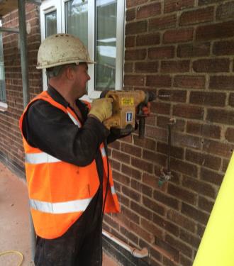 RetroTies, 8mm x 195mm, were inserted through the holes and driven into the internal studwork, as they are self-tapping, with a minimum embedment of 50mm. The outer end of each tie was then bonded into the external masonry using PolyPlus resin with approximately 160 RetroTies installed on each property.