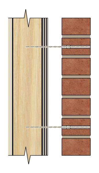 Next, the exact location of the timber stud had to be established. The contractor carefully removed selected bricks to identify stud positions and, after identifying the stud centres, proceeded to drill the required 12mm clearance holes in the masonry for the tie installations.