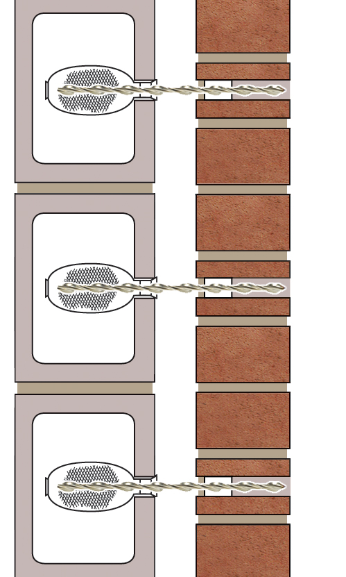 Helifix CemenTie - Remedial wall tie using expanded grout-filled sock in hollow block far leaf