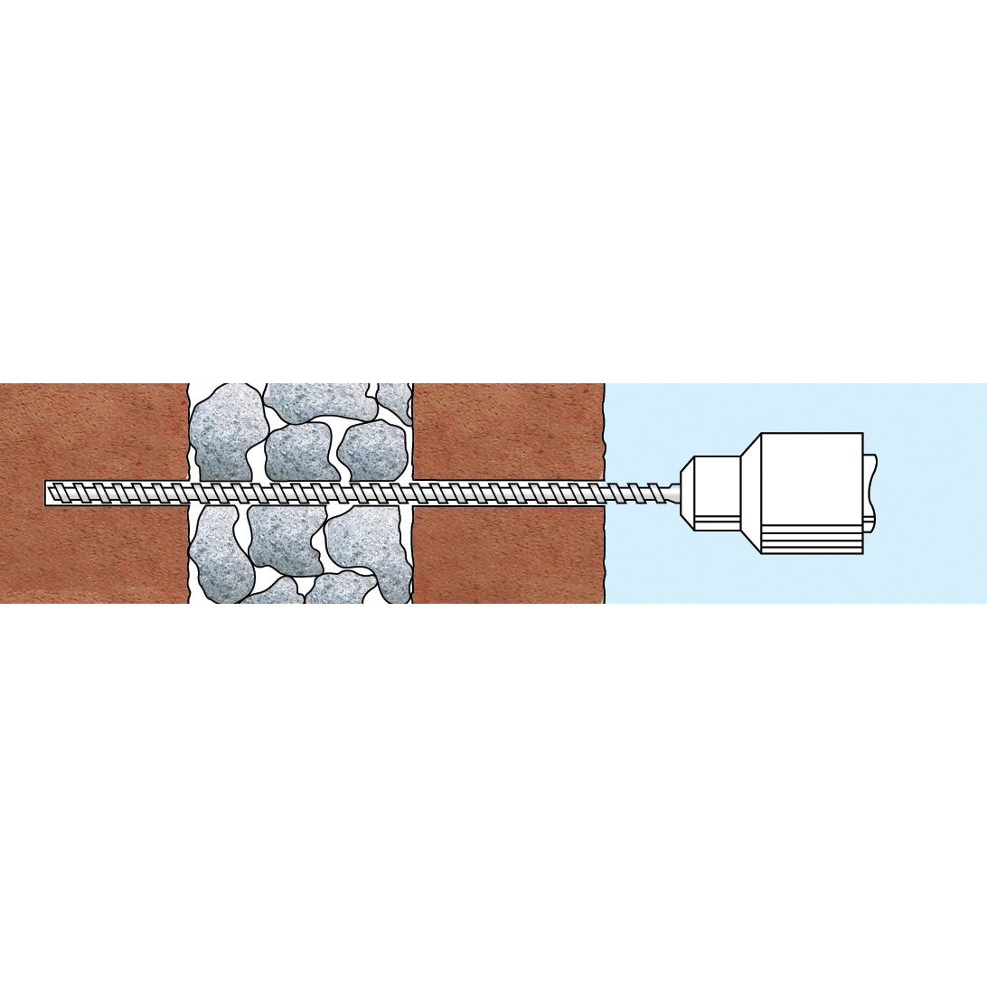 As grout is injected the Helifix CemTie is carried with it