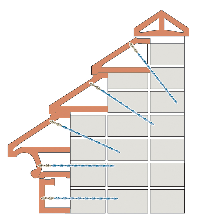 The Helifix Terracotta Tie secures fragile terracotta facings and delicate decorations and features which have become loose or are suffering from stress fractures.