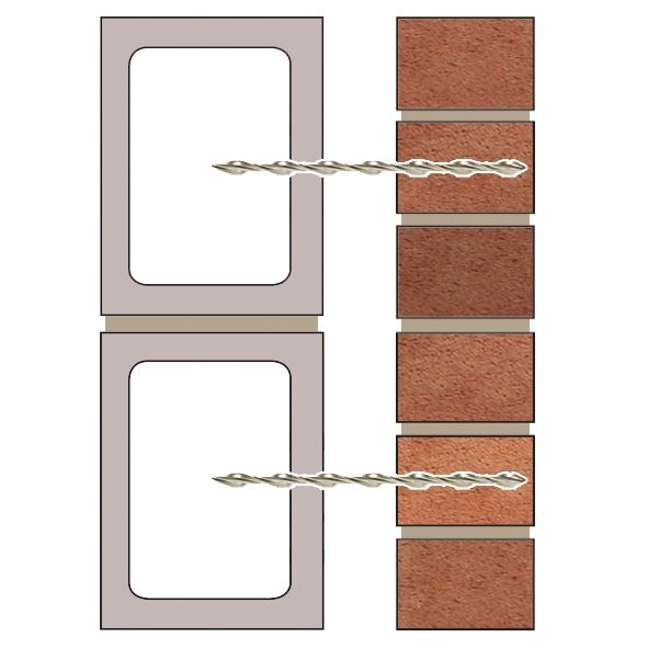 Other types of the Helifix DryFix tie are available for specialist applications. For securing delicate terracotta fixings Helifix offer the Helifix DryFix Terracotta, for securing loose render there is the Helifix DryFix RenderPin and for securing a soft outer leaf material to a hard inner leaf material is the Helifix DryFix Asymmetric.