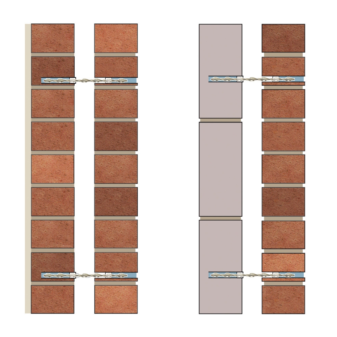 - Replacement tie for cavity walls where a resin bond is required at both ends of the tie