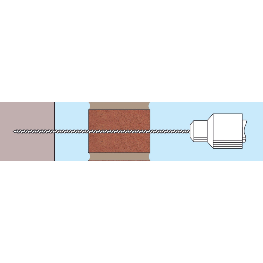 Load the Helifix RetroTie into the support tool, insert through the near leaf and drive home into the far leaf. The ‘O’ ring marker allows the cavity width to be measured and avoids over-driving.