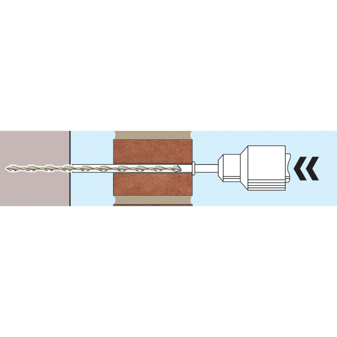 Mark the points for the Helifix RetroTie insertion on the face of the near leaf brickwork. Drill an appropriate diameter pilot hole through the near leaf brick and to the required depth into the far leaf. The hole should be drilled about half way up the brick and around 15mm from the end to avoid frogs and core holes.